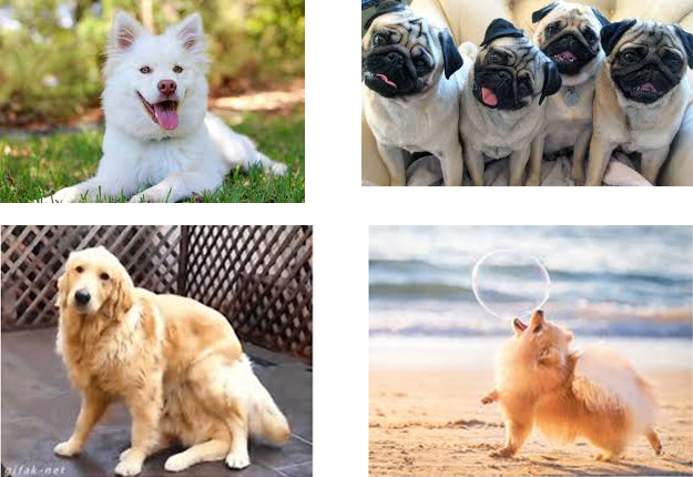 Now consider a real-life problem: say, building a dog recognizer. The input space comprises pixel locations and pixel colors (x, y, r, g, b, where r, g, b denote the red, green, and blue components of a pixel color). The input dimensionality is large (proportional to the number of pixels in the image). Figure 1.6 gives a small glimpse of the possible variations in background and foreground that a typical deep learning system (such as a dog image recognizer) has to deal with.