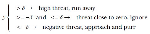 We can make a final multiclass run/ignore/approach decision based on threat score by comparing the threat score y against a threshold δ, as follows: