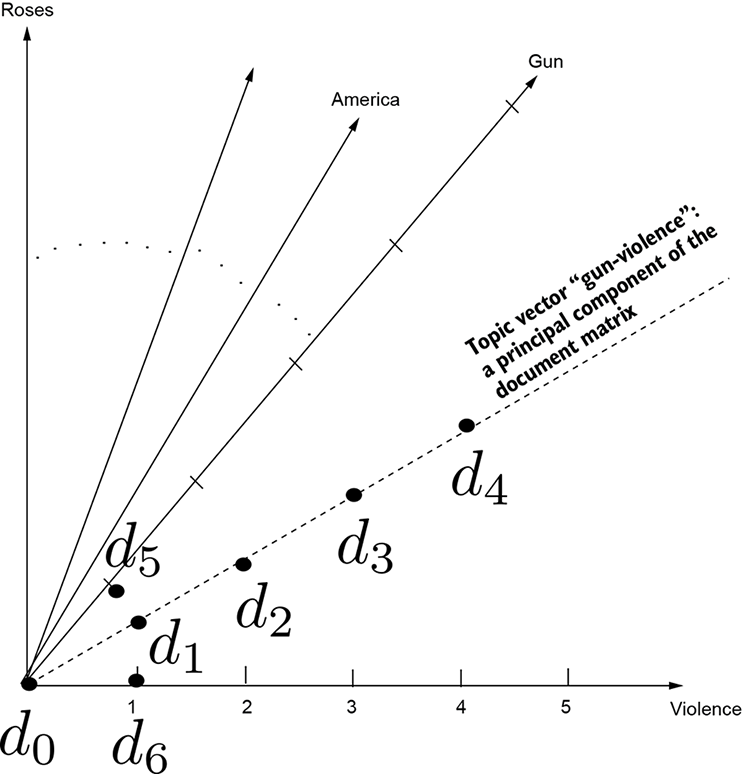 Figure 4.7 Latent semantic analysis. Note that the vertical axis line is actually much smaller than it appears to be in the diagram.