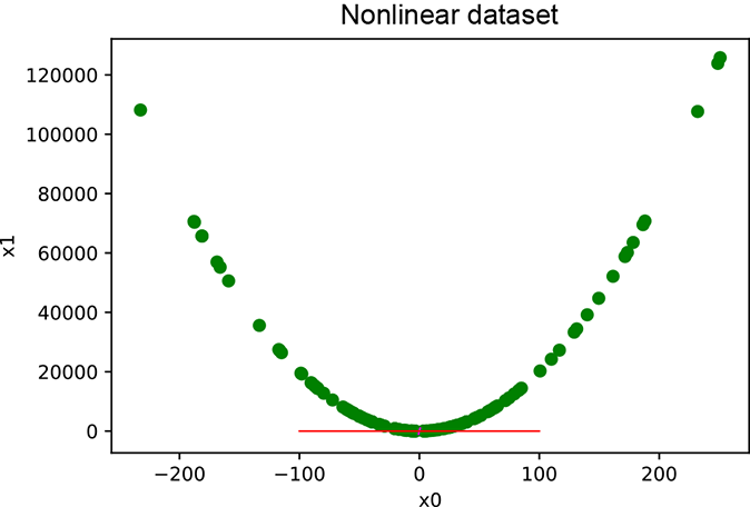 Let’s first examine the idea in two dimensions. As usual, we name our coordinate axes X0, X1, and so on, instead of X, Y, to facilitate the extension to multiple dimensions. An individual 2D data point is denoted . The dataset is {(0), (1), ⋯, (n)}.