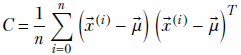 • Given a set of points X = {(0), (1), (2), ⋯, (n)} in an n + 1-dimensional space, we can define the mean vector and covariance matrix as