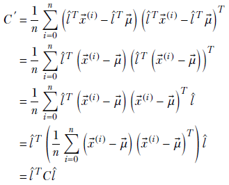 The variance along an arbitrary direction (unit vector) is TCl̂. This is a quadratic form. Consequently, the maximum (minimum) variance of a set of data points in multidimensional space occurs along the eigenvector corresponding to the largest (smallest) eigenvalue of the covariance matrix. This direction is called the first principal axis of the data. The subsequent eigenvectors, sorted in order of decreasing eigenvalues, are mutually orthogonal (perpendicular) and yield the subsequent direction of maximum variance. This technique is known as principal component analysis (PCA).