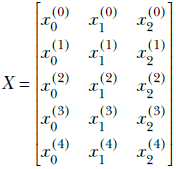 The previous equations are general, meaning they can be extended to any dimension. To be precise, given a set of n multidimensional data points X = {(0), (1),⋯, (n)}, we can define