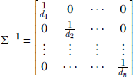 where . Once again, the matrix representation is dimension independent. In other words, equation 4.1 represents a hyperellipsoid. Note that if the ellipse axes are aligned with the coordinate axes, matrix A is diagonal. If we rotate the coordinate system, each position vector is rotated by an orthogonal matrix R. Equation 4.1 is transformed as follows (we have used the rules for transposing the products of matrices from equation 2.10):