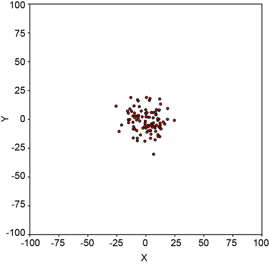 One glance at table 6.1 tells us that the probabilities are concentrated along the main diagonal, which indicates dependent events. This can be validated by inspecting one joint probability—say, p(E1, F1)—and the corresponding marginal probabilities p(F1) and p(E1). We can see that p(E1, F1) = 0.2 ≠ p(F1) × p(E1) = 0.26 × 0.26, establishing that the random variables weight W and height H are not independent. For contrast, look at table 5.6. In that case, for any valid i, j pair, p(Ei, Gj) = p(Gi) × p(Ej): the two events (weight and distance of a resident’s home from the city center) are independent. Note the following: