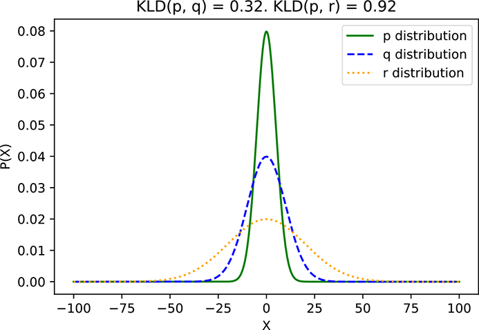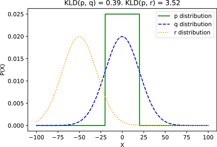 Kullback–Leibler divergence gives us a measure of the dissimilarity between two probability distributions.