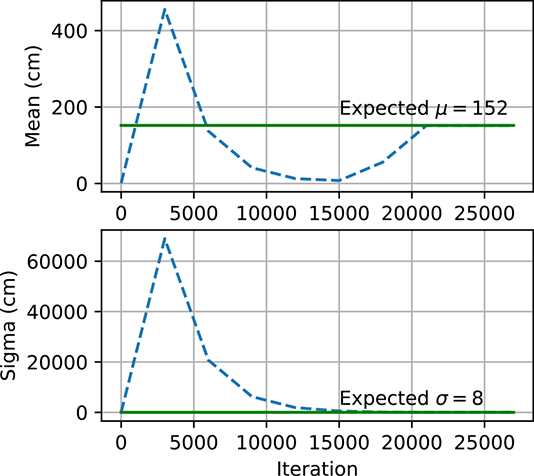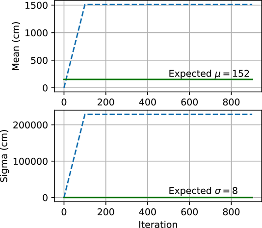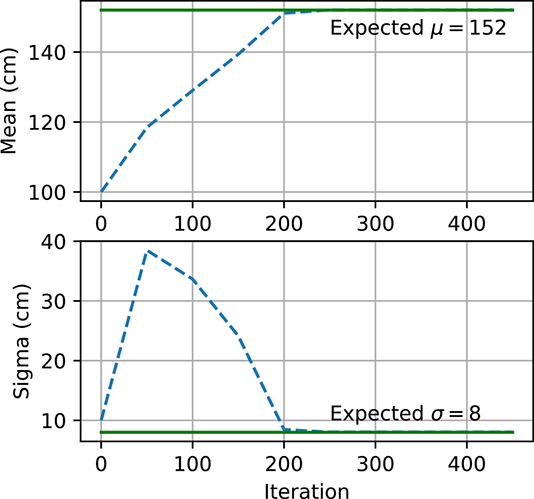while (curr_likelihood - prev_likelihood) < 1e-4: ① # E Step ② pi = gmm.mixture_distribution.probs ③ components = gmm.component_distribution ④ ⑤ log_gamma_numerators = components.log_prob( X.unsqueeze(1)) + torch.log(pi).repeat(n, 1) ⑥ ⑦ log_gamma_denominators = torch.logsumexp( log_gamma_numerators, dim=1, keepdim=True). ⑧ log_gamma = log_gamma_numerators - log_gamma_denominators self.gamma = torch.exp(log_gamma) # M Step ⑨ n = X.shape[0] ⑩ N = torch.sum(gamma, 0) pi = N / n ⑪ mu = ((X.T @ gamma)/N).T ⑫ x_minus_mu = (X.repeat(K, 1, 1) - gmm.component_distribution.unsqueeze(1). repeat(1, n, 1)) ⑬ x_minus_mu_squared = x_minus_mu.unsqueeze(3) @ x_minus_mu.unsqueeze(2) ⑭ sigma = torch.sum(gamma.T.unsqueeze(2).unsqueeze(3) * x_minus_mu_squared, axis=1) / N.unsqueeze(1).unsqueeze(1).repeat(1, d, d) prev_likelihood = curr_likelihood curr_likelihood = torch.sum(gmm.log_prob(X)) ⑮