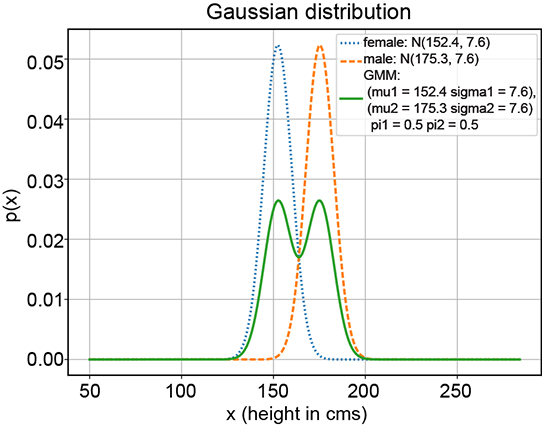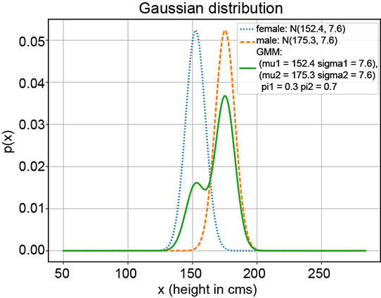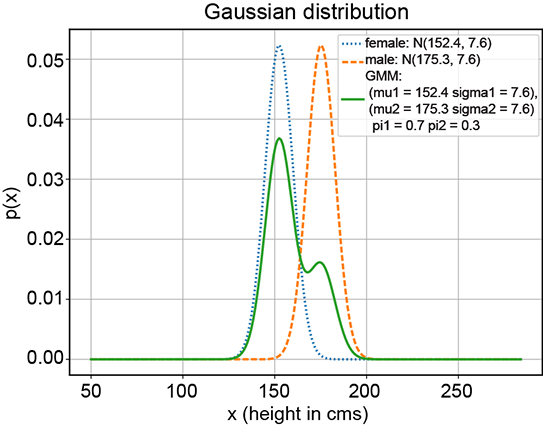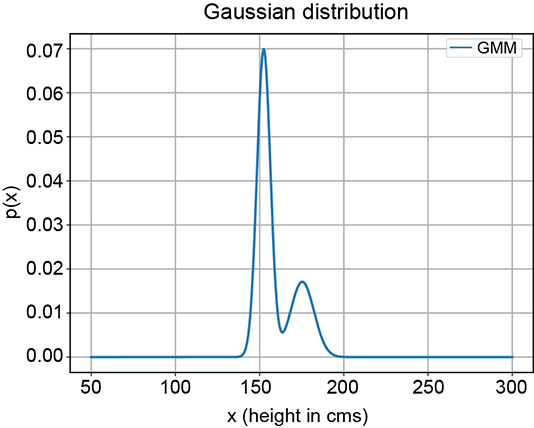 Gaussian mixture models (GMM) are unsupervised probability models that fit multiclass data distributions having multiple clusters in the training dataset, each corresponding to a different class. Here, MLE does not yield a closed-form solution but instead yields an iterative solution to estimate the mixture weights, means, and variances of the individual Gaussians in the mixture.