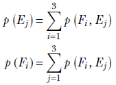 pop. = 4,000 p(E3, F2) = 0.04 p(E3| F2) = p(E3, F2) / p(F2) = 0.083 p(F2)| E3) = p(E3, F2) / p(E3) = 0.154 |
