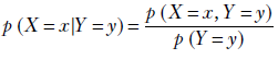 is given by the ratio of the joint probability of the two and the marginal probability of the condition