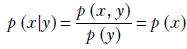 This makes intuitive sense: if X and Y are independent, knowing Y does not make any difference to p(X = x), so the probability of X given Y is the same as the probability of X.