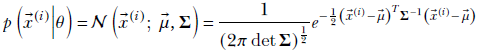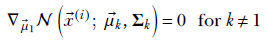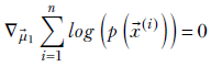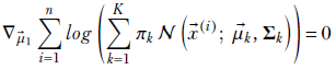 2, Σ2, ⋯ that will maximize the log joint probability, we take the gradient of the log joint probability with respect to these parameters, equate them to zero, and solve for the parameter value (as discussed in section 3.3.1). Here we demonstrate the process with respect to