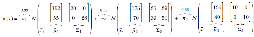 return {x1 , μ1, Σ1, x2, μ2, Σ2 , … , xK, μK, ΣK}