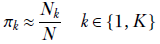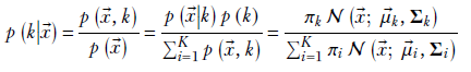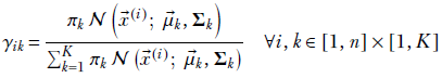 ② Computes the posterior probabilities γi,k = p(Z = k|X = xi) using current