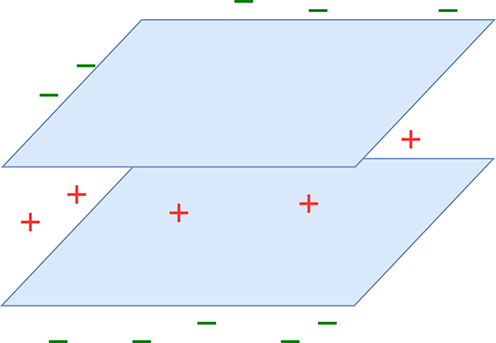 Figure 7.4a is only a schematic. In reality, we do not know the exact regions in the input space that correspond to the classes of interest. We identify—via human labeling—some sample points on the input space, along with their correct class (the ground truth). Such a sampled set of <input point, correct output aka ground truth> pairs is called training data. An example training data set for the cat brain problem is shown in figure 7.4b (ground-truth training data points from different classes are marked with separate symbols: plus and dot, respectively). The decision boundary we create by training a neural network is optimized to classify the training data points (and nothing more) as nicely as possible. If the training data points’ distribution is a reasonable reflection of the true distribution—that is, the sample points from each class more or less span the entire region in the input space corresponding to that class—the decision boundary obtained by training on that data set will be good. But if, as illustrated in figure 7.4c, the training data does not reflect the true distribution of the classes in the input space, the decision boundary learned by training on that data maybe bad.