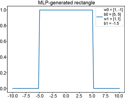 Figure 7.18 Modeling a rectangular decision region with MLPs