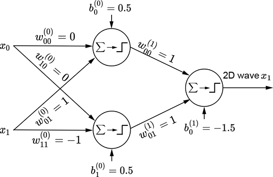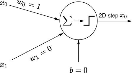 (b) Perceptron for a 2D step function along the x0 (x) direction