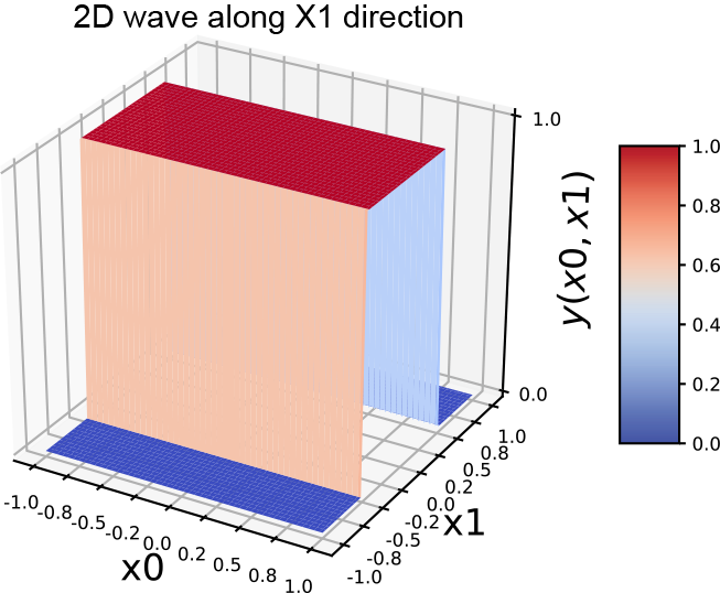 (a) 2D step function along the x0 (x) direction