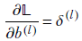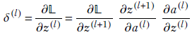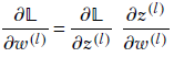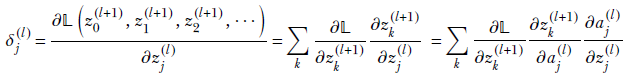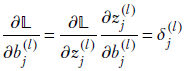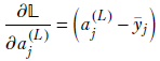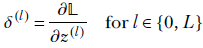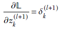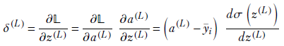 • A backward pass is the process by which the gradients of the loss with respect to all the weights and biases are generated. It relies on the result of the preceding forward pass and proceeds from the output layer toward the input layer. It uses auxiliary variables (l), which can be computed by iterating backward from the last (closest to output) layer to the first (closest to input) layer—hence the name backward propagation—and all the required gradients can be computed from those auxiliary variables. Mathematically,