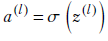 • (l) represents the activations for the entire layer l. Applying the sigmoid function to a vector is equivalent to applying it individually to each element of the vector:
