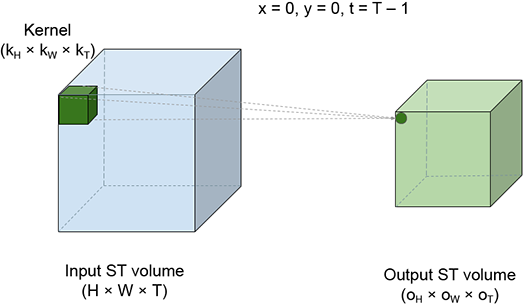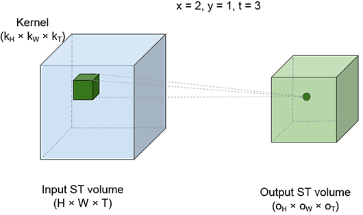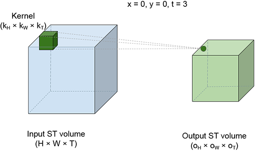 3D convolutions can conceptually be viewed as sliding a brick (3D kernel) over the entire volume of a room 3D input array). Real-world applications of 3D convolutions include motion detection in an image sequence.