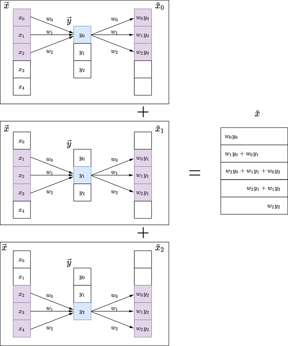 Figure 10.16 1D convolution and its transpose