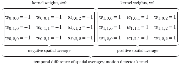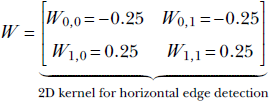 As mentioned earlier, a convolution’s physical effect on an input array radically changes with the weights of the convolution kernel. Now let’s examine a very different kernel that detects edges in the input data.