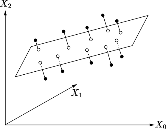 as another example, consider a set of points in 3D, represented by coordinates X, Y, Z. If the Z coordinate is near zero for all the points, the data is concentrated around the X, Y plane. We can (and should) represent these points in two dimensions by projecting them onto the Z = 0 plane. Doing so approximates the positions of the points only slightly (they are projected onto a plane that they were close to in the first place). In a more realistic example, the data points may be clustered around an arbitrary plane in the 3D space (as opposed to the Z = 0 plane). We can still reduce the dimensionality of these data points to 2D by projecting on the plane they are close to.