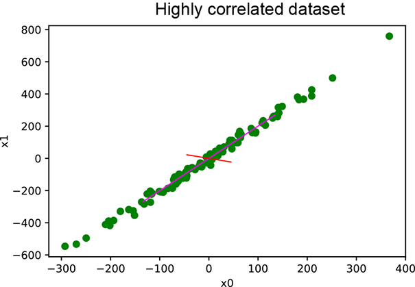 The variance along an arbitrary direction (unit vector) l̂ is l̂ TCl̂. This is a quadratic form. Consequently, the maximum (minimum) variance of a set of data points in multidimensional space occurs along the eigenvector corresponding to the largest (smallest) eigenvalue of the covariance matrix. This direction is called the first principal axis of the data. The subsequent eigenvectors, sorted in order of decreasing eigenvalues, are mutually orthogonal (perpendicular) and yield the subsequent direction of maximum variance. This technique is known as principal component analysis (PCA).