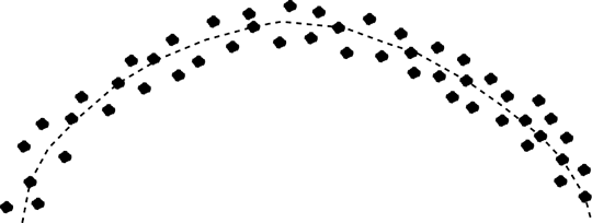 Every word in the vocabulary gets its own dimension in the document space. If a word does not occur in a document, we put a zero at that word’s index location in the descriptor vector for that document. We store one descriptor vector for every document in the archive. In theory, the document descriptor is an extremely long vector: its length matches the size of the vocabulary of the documents in the system. But this vector only exists notionally. In practice, we do not explicitly store descriptor vectors in their entirety. We store a <word, frequency> pair for every unique word that occurs in a document—but we do not explicitly store words that do not occur. This is a sparse representation of a document vector. The corresponding full representation can be constructed from the sparse one whenever necessary. In documents, certain words often occur together (for example, Michael and Jackson, or gun and violence). For example, in a given set of documents, the number of occurrences of gun will more or less match the number of occurrences of violence: if one appears, the other also appears most of the time. For a descriptor vector or, equivalently, a point in a feature space representing a document, the value at the index position corresponding to the word gun will be more or less equal to that for the word violence. If we project those points on the hyperplane formed by the axes for these correlated words, all the points fall around a 45-degree straight line (whose equation is x = y), as shown in figure 4.1.
